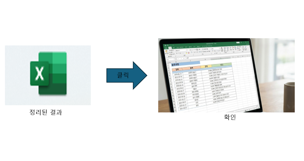 이전에는 여러 개의 엑셀 파일을 열어가며 영수증을 하나씩 확인해야 했지만, 이제는 코드가 파일을 자동으로 불러와 필요한 정보만 정리해 줬습니다. 직원은 엑셀을 ‘조회하기 위해’ 여는 것이 아니라,