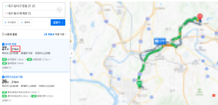 엑셀에서 출발지와 도착지를 확인한 뒤, 네이버 지도에 주소를 직접 입력해 거리를 검색했습니다.