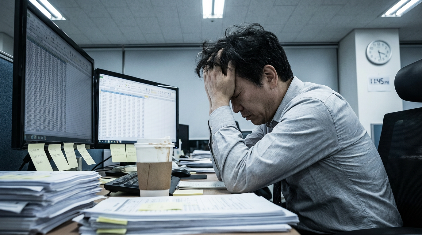 ⏱️ 이 반복 작업에만 매일 아침 약 4시간 소요 — 연간 약 1,000시간
